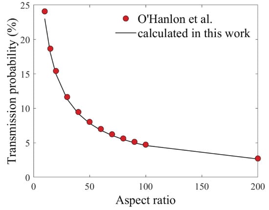 where α is the aspect ratio of the slit-like structure. Figure 3 reports the comparison of the values calculated with Equation (3) and those from O’Hanlon et al. [27]. We found that the difference was below 4.4% for aspect ratio α larger than 10.