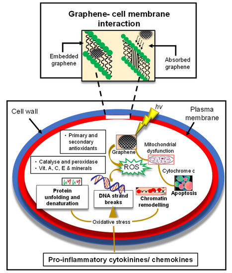 Schematic representation of the effective mechanisms by which ROS are linked with the toxicity of graphene at a cellular level. Adapted from [108].