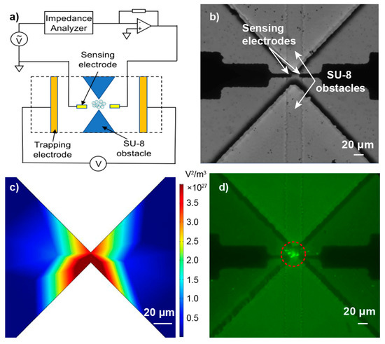 - Chen, N.-C.; Chen, C.-H.; Chen, M.-K.; Jang, L.-S.; Wang, M.-H. Single-cell trapping and impedance measurement utilizing dielectrophoresis in a parallel-plate microfluidic device. Sens. Actuators B Chem. 2014, 190, 570–577. [Google Scholar] [CrossRef]