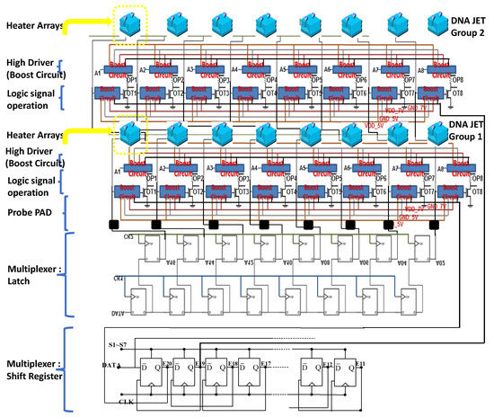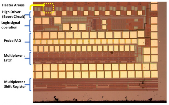 The DNA printing integrated multiplexer driver MEMS head (IDMH) follows the 0.35-um 2P2M processing model standard complementary metal–oxide–semiconductor (CMOS) design rules to establish the model (