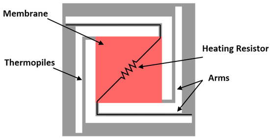 Schematic of a thermopile-based sensor with a heating resistor, adapted from [24].