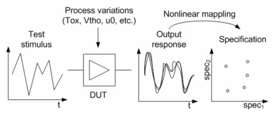 - Variyam, P.N.; Cherubal, S.; Chatterjee, A. Prediction of analog performance parameters using fast transient testing. IEEE Trans. Comput. Aided Des. Integr. Circuits Syst. 2002, 21, 349–361. [Google Scholar] [CrossRef]