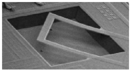 In the former case, OTM for analogue circuits was adapted to simulate, with polysilicon strain gauges, the deflection of a U-shaped cantilever vibrating due to Lorentz forces in the presence of a magnetic field, as shown in Figure 7. The magnetometer was reconfigured into an oscillating device using a first-order derivation feedback circuit to induce motion of the DUT and calculate the resulting frequency and the amplitude of the oscillations. Frequency and amplitude are referred to as indirect parameters, while the thicknesses of various layers of the cantilever structure are referred to as low-level parameters. Both the direct parameters such as sensitivity and settling time and the indirect parameters are dependent on the low-level physical parameters. OTM did not prove to be useful in reliable detection of small deviation of the low-level parameters, or small parametric faults, however it performed well for detecting catastrophic fault or large parametric faults. With a natural frequency of 11 kHz, the authors concluded that the duration of the test would be around 12 ms.