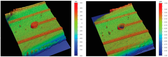 Interferometry images of fault-free (left) and degraded (right) electrodes [50].