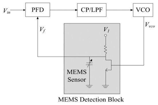 - Supon, T.M.; Thangarajah, K.; Rashidzadeh, R.; Ahmadi, M. A PLL Based Readout and Built-in Self-Test for MEMS Sensors. In Proceedings of the IEEE 54th International Midwest Symposium on Circuits and Systems (MWSCAS), Seoul, Korea, 7–10 August 2011; IEEE: Piscataway, NJ, USA, 2011; pp. 1–4. [Google Scholar] [CrossRef]