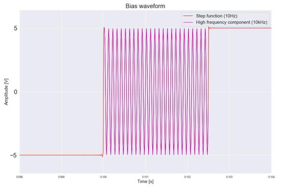 The electrically induced stimuli test methods presented in Section 2.2 are off-line methods since they perturb MEMS outputs during normal operating conditions [82]. A solution is required to test MEMS during their operation, whilst making sure that test results can be solely related to the input stimulus response. As shown in Figure 16, in the bias superposition method, also called bias modulation method, a test stimulus is either added (superposition) or multiplied (modulation) to the normal electrical biasing of the structure of the MEMS to be tested. The characteristic of the stimulus allows the test response to be extracted from the normal functional response of the MEMS, ideally without compromising either signal. The injected test signal has typically a frequency outside the operating bandwidth of the functional signal, but still within the physical bandwidth of the MEMS to allow online operation. Following [82], this subsection describes in detail the four different types of stimuli used for these tests: differential bias, alternative bias, actuating bias and redundancy bias.
