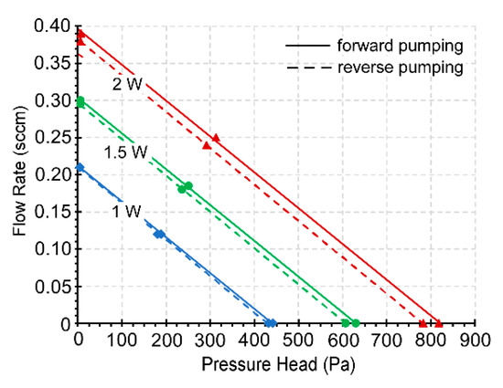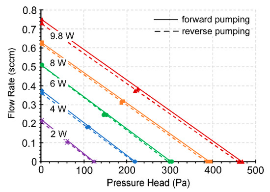 - Cheng, Q.; Qin, Y.; Gianchandani, Y.B. A bidirectional Knudsen pump with superior thermal management for micro-gas chromatography applications. In Proceedings of the IEEE International Conference on Micro Electro Mechanical Systems (MEMS), Las Vegas, NV, USA, 22–26 January 2017; pp. 167–170. [Google Scholar]