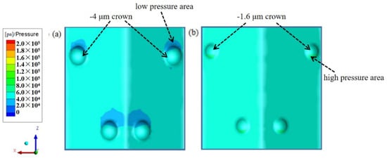 The contour of pressure (a) at the depth of −4 μm (b) at the depth of −1.6 μm.