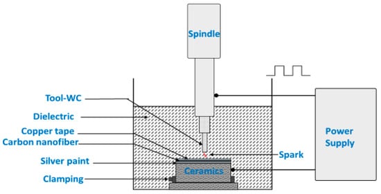 Ceramics are considered as one of the outstanding structural materials due their excellent properties such as high hardness, higher strength, superior chemical stability, low density, high temperature strength, high wear resistance, and biocompatibility. Because of these superior characteristics, ceramic materials found their application not only as cutting tools but also in the aerospace and biomedical industries []. However, ceramic materials are also well recognized as difficult to machine materials due to their associated enhanced mechanical characteristics. As a result, the conventional machining of ceramics faces challenges such as high cutting forces, higher tool consumption, the generation of microcracks in mechanical machining, and complex and expensive manufacturing cycle specially in the final stage of machining. Thus, the main challenge in achieving wider application of ceramics is to develop further machining techniques which would allow economical machining as well as decreased residual damage [].