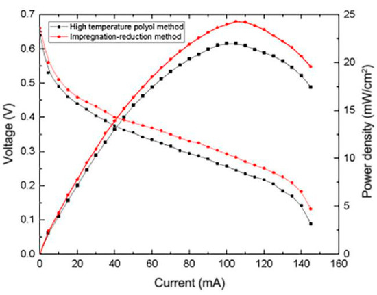 3.3. Effect of Impregnation Reduction Method on the Performance of μDMFC