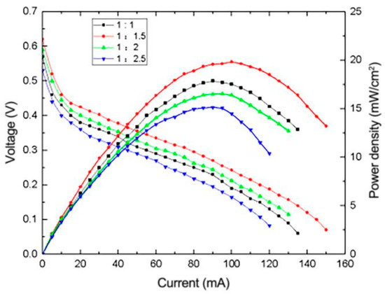 3.4.2. Effect of Pt-Ru Molar Ratio on the Performance of μDMFC