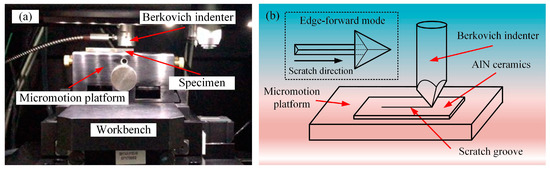 - Cai, L.; Guo, X.; Gao, S.; Li, Z.; Kang, R. Material removal mechanism and deformation characteristics of AlN ceramics under nanoscratching. Ceram. Int. 2019, 45, 20545–20554. [Google Scholar] [CrossRef]