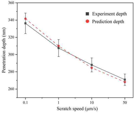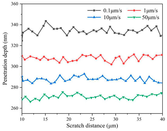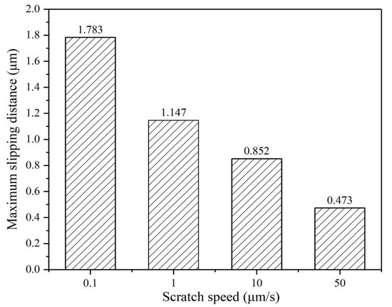 3.2. The Maximum Slipping Distance and Penetration Depth of Indenter under Different Scratch Speeds