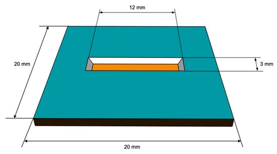 The test specimen is shown in Figure 2. It has a frame size of 20 mm × 20 mm and a thickness of 250 μm. After the sample fabrication, the 12 mm × 3 mm thin film membrane with a thickness of 800 nm can be found in the center and can be used for bulge testing.