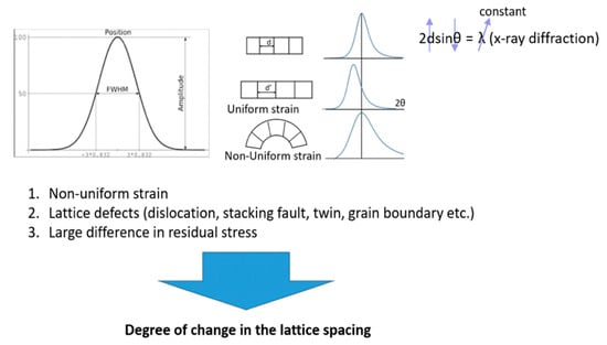 According to Bragg’s law, the X-ray diffraction peak varies with changes in lattice spacing (shown in Figure 19).