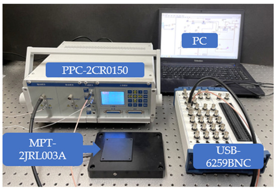 Figure 2 shows the experimental setup. The piezoelectric two-dimensional positioning platform MPT-2JRL003A has a displacement range of 55 μm × 55 μm, a displacement resolution of 5 nm and a repeat positioning accuracy of 50 nm. The study only carried out experiments on the one-dimensional hysteresis of the x-axis. The precision positioning controller PPC-2CR0150 has a sensor module with a sensitivity of 3 μm/V and a drive module with a gain of 0-10. The data acquisition system includes a data acquisition card and PC that can use the LabVIEW software. The data acquisition card is National Instruments USB-6259BNC, which has 32 channels of 16-bit sampling rate of 1.25 MS/s analog input channels and 4 channels of 16-bit sampling rate of 2.8 MS/s analog output channels.