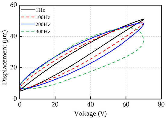 Piezoelectric actuators are widely used in the fields of micromachining [41,42]. In the field of ultra-precision machining, there are higher requirements for the positioning accuracy of micro-position devices such as piezoelectric actuators. Due to the increase in frequency, the dynamic hysteresis characteristics of piezoelectric actuators have a greater impact on the positioning accuracy of the system [43,44].