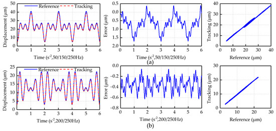 Feedforward experiment results of multi-frequency sinusoidal signal: (a) 50/150/250 Hz; and (b) 200/250 Hz.