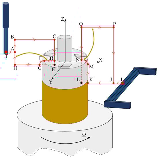 Step 3: After the turntable starts to move, the vertical brushing micro-manipulator completes a cycle of movement on its own workstation according to the preset trajectory of motion for each Ω angle of rotation. When the turntable rotates to the θ angle, the vertical brushing micro-manipulator completes the final movement and returns to the original position (see Section 2.2.2), at which point the turntable returns to its original position.