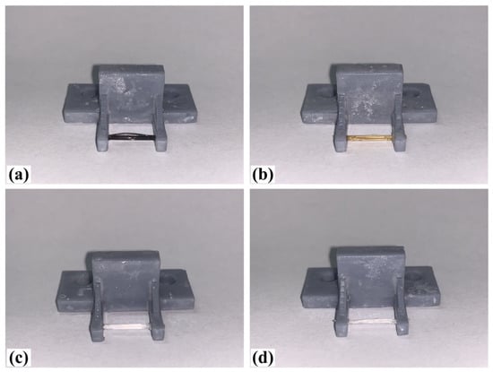 Table 9 shows the results of carding the first and second winding groups using four vertical brushes (Figure 10a–d). In the experiment, each bush carded three electrode wires, identified as Wire A, Wire B and Wire C. For the first winding group with horizontal floating wires, in the carding result obtained using nylon brush (the brush shown in Figure 10a), Wire A and Wire B did not conform to the Req1_V criterion in terms of shape, while only Wire C met the Req1_V criterion, and all three wires, in terms of attitude, did not meet Req2_V. The three wires did not conform to Req3_V in terms of consistency. In the carding result obtained using bristled brush (the brush shown in Figure 10b), only Wire B had a shape that met the Req1_V criterion, and Wire A and Wire B met the Req2_V criterion in terms of attitude, but the consistency of the three wires did not meet the requirements of Req3_V. In the carding result obtained using nanometer-silk brush (the brush shown in Figure 10c), the S&A of all three wires met Req1_V and Req2_V, and the consistency between the three wires complied with the Req3_V criterion. In the carding result obtained using wool brush (the brush shown in Figure 10d), the S&A of all three wires also met Req1_V and Req2_V; similarly, good consistency existed between the wires, which conformed to the Req3_V criteria. For the second winding group with wires attached to the side wall, in the carding result obtained using brush(a), only Wire B had a shape that met the Req1_V criterion, and Wire A and Wire C met the Req2_V criterion in terms of attitude, but the consistency of the three wires did not meet the requirement of Req3_V. In the carding result obtained using brush(b), only the shape of Wire A met the Req1_V criterion and the attitude of Wire A and Wire B met the Req2_V criterion. The consistency of the three wires did not meet the Req3_V requirements. In the carding result obtained using brush(c), all three wires met Req1_V in terms of the shapes of the wires, but only the attitude of Wire B meets the Req2_V criterion. The consistency of the three wires did not meet the Req3_V requirements. In the carding result obtained using brush(d), the S&A of all three wires met Req1_V and Req2_V; however, the consistency between the wires was slightly poor and did not conform to the Req3_V criterion. As a whole, for the first group of winding vertical carding results, the vertical micro-manipulator with the brush made of nanometer silk and wool materials had an ideal carding effect and ensured that the S&A of the wires on the winding were consistent to a certain extent, while the micro-manipulator of the brush made of nylon and bristle materials had a poor effect on vertical carding. The carding results of the second group of windings showed that the vertical micro-manipulator with the brush made of wool material had the best carding effect, followed by nanometer silk material and nylon material. The brush made of bristle material had the worst vertical carding effect.