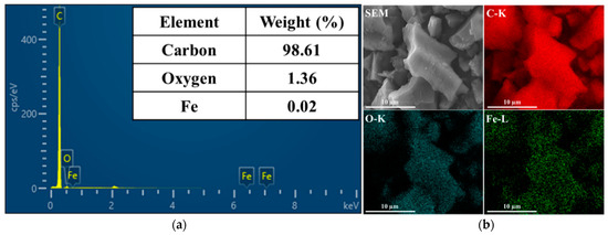 Activated carbon (CEP-21K, PCT Co., Gumi-si, Korea) and iron (III) nitrate nonahydrate (Sigma-Aldrich, St. Louis, MO, USA) were used without any treatment. A Nafion® solution (Sigma-Aldrich, St. Louis, MO, USA) was used in the electrochemical studies. A glassy carbon electrode (GCE; with 0.071 cm2 area) (CH Instruments, Inc., Austin, TX, USA) was also used.