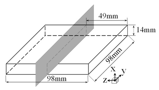 Schematic diagram of specimen size and cutting surface.