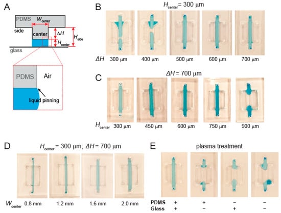 3.2. Channel Height and Surface Treatment Are Key to Liquid Pinning-Based Hydrogel Barrier Formation