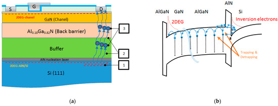 7. Choi, F.S.; Griffiths, J.; Ren, C.; Lee, K.; Zaidi, Z.; Houston, P.; Guiney, I.; Humphreys, C.J.; Oliver, R.A.; Wallis, D.J. Vertical leakage mechanism in GaN on Si high electron mobility transistor buffer layers. J. Appl. Phys. 2018, 124, 055702. [Google Scholar] [CrossRef] [Green Version]