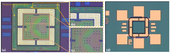 - Lo, C.-C.; Chen, F.; Fedder, G.K. Integrated HF CMOS-MEMS square-frame resonators with on-chip electronics and electrothermal narrow gap mechanism. In Proceedings of the IEEE International Conference on Solid-State Sensors, Seoul, Korea, 5–9 June 2005; pp. 2074–2077. [Google Scholar]