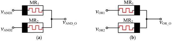 Models of AND and OR gates for the memristor: (a) memristor AND gate; (b) memristor OR gate.