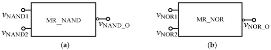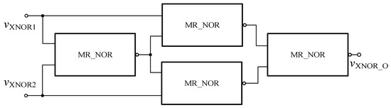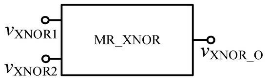 Based on the relationship between NOR and XNOR logic gates as shown in Equation (4), the XNOR circuit based on the memristor in FPGA as shown in Figure 13 can be obtained, and the encapsulated module is shown in Figure 14.