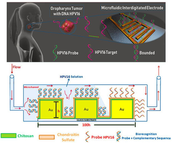 - Soares, A.C.; Soares, J.C.; Rodrigues, V.C.; Dal, H.; Follmann, M.; Maria, L.; Batista, R.; Carvalho, A.C.; Melendez, M.E.; Fregnani, J.H.T.G.; et al. Microfluidic-Based Genosensor To Detect Human Papillomavirus (HPV16) for Head and Neck Cancer. Appl. Mater. Interfaces 2018, 10, 36757–36763. [Google Scholar] [CrossRef] [PubMed]