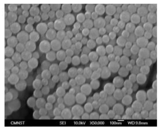 A continuous-flow synthesis system is shown in Figure 23. An obstacled micromixer was further applied to synthesize silica nanoparticles at different recipes and temperatures. The channel structure with a gap ratio of 1/8 and three mixing units was adopted due to the good mixing efficiency. Two stock solutions were loaded into different syringes, and equal flow rates were pumped into the micromixer by using two syringe pumps (KDS 200, KD Scientific Inc., Holliston, MA, USA). The solution of tetraethoxysilane (TEOS) in ethyl alcohol was supplied to the main inlet of the obstacled micromixer. A solution of ammonia, water, and ethyl alcohol was applied to side inlets of the obstacled micromixer. Inlet ports of the obstacled micromixer were interfaced with three syringes using silicon tubes. An aging channel with 4 m in length was connected with the outlet port of the obstacled micromixer.