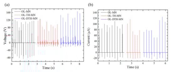- Wang, J.; Wang, H.; He, T.; He, B.; Thakor, N.V.; Lee, C. Investigation of low-current direct stimulation for rehabilitation treatment related to muscle function loss using self-powered TENG system. Adv. Sci. 2019, 6, 1900149. [Google Scholar] [CrossRef]