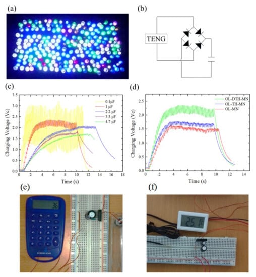 - Zhang, L.; Li, H.; Xie, Y.; Guo, J.; Zhu, Z. Triboelectric nanogenerator based on Teflon/vitamin B1 powder for self-powered humidity sensing. Beilstein J. Nanotechnol. 2020, 11, 1394–1401. [Google Scholar] [CrossRef] [PubMed]