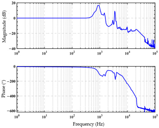 The piezoelectric actuator is subjected to different dynamic forces by replacing the system with compression springs of different stiffnesses. The dynamic force can be measured by the pressure sensor. The signal of the pressure sensor is amplified by the signal amplifier. The displacement signal of the piezoelectric actuator and the pressure signal are collected by a data acquisition card. Finally, these two signals are transmitted to the computer for data processing and analysis to research dynamic hysteresis with force-voltage coupling. To obtain the bandwidth of the open-loop system, a sweep frequency experiment was conducted in this study. As shown in Figure 2, the resonant frequency of the open loop system is about 900 Hz. The magnitude is less affected at a frequency of 1–300 Hz; therefore, we chose to experiment within the frequency range of 1–300 Hz.