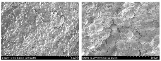 The scanning electron microscope photograph of the initial section of HTPB propellant (Figure 7) revealed that there were many initial defects in the propellant. There is no perfect package between the particles and the matrix. The initial defects are formed when the propellant is stirring, curing, and cooling as well as the vacuum degree.