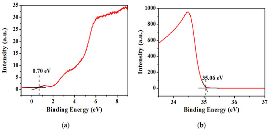 Besides CV, the determination of energy levels can also be obtained using the ultraviolet photoelectron spectroscopy (UPS) technique by determining their HOMO level. From UPS spectra (Figure 4), the HOMOonset and cut-off energy of VTTBNc are observed at 0.70 eV and 35.06 eV, respectively. The HOMO level can be determined by utilizing the following equations: