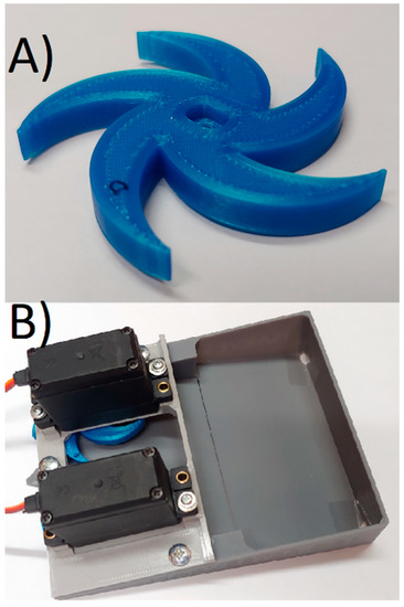 Figure 8. (A) 3D printed blade, (B) fully assembled harvester.