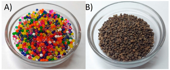 Figure 10. Particles used in the investigations: (A) polymer balls, (B) expanded clay.