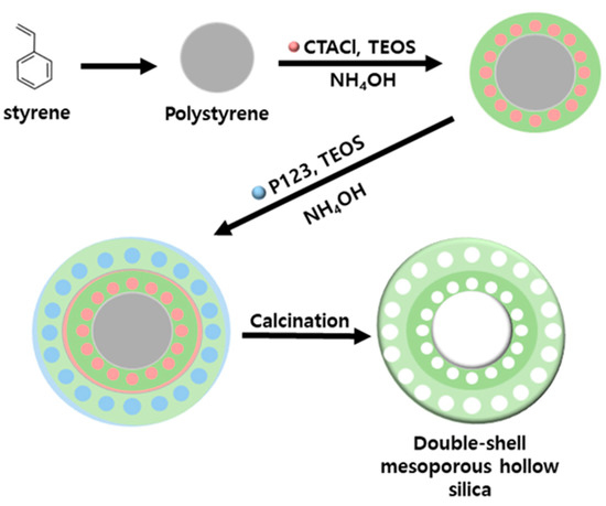 2.4. Synthesis of the Double-Shell Mesoporous Hollow Silica