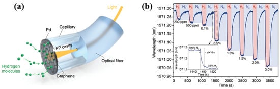 - Ma, J.; Zhou, Y.L.; Bai, X.; Chen, K.; Guan, B.O. High-sensitivity and fast-response fiber-tip Fabry–Pérot hydrogen sensor with suspended palladium-decorated graphene. Nanoscale 2019, 11, 15821–15827. [Google Scholar] [CrossRef]