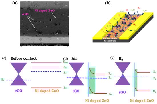 - Bhati, V.S.; Ranwa, S.; Rajamani, S.; Kumari, K.; Raliya, R.; Biswas, P.; Kumar, M. Improved sensitivity with low limit of detection of a hydrogen gas sensor based on rGO-loaded Ni-doped ZnO nanostructures. ACS Appl. Mater. Interfaces 2018, 10, 11116–11124. [Google Scholar] [CrossRef] [PubMed]