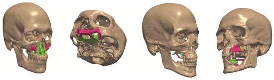 Finally, the final topologies of the craniofacial region with the inserted bone replacements are shown in Figure 11.