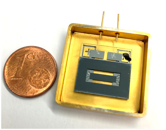 The micromechanical components were made from SOI wafers, and the counter electrodes were defined on a fused silica wafer into which defined cavities were etched, forming defined electrode distances. After separation from the wafer by laser dicing, the silicon membrane inside the device chip was bonded to the counter electrode chip via adhesive bonding. Details of the manufacturing process can be found in ref [29].