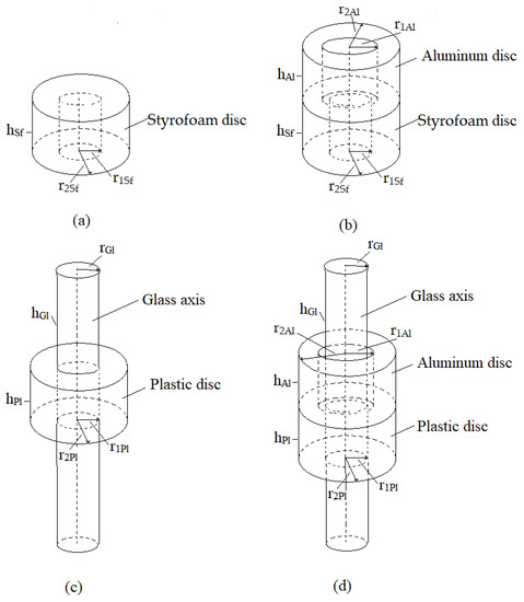 where 100 µm, 185 µm, 810 µm 165 µm, 50 µm, 195 µm, 50 µm, 80 µm, 29 rad/s (see Section 3.4), 0.23 s, 0.10 s, while 1050 kg/m3, 2500 kg/m3 and 2700 kg/m3 presented the density of plastic, glass and aluminum, respectively.