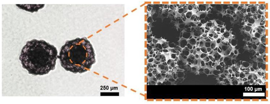 The micromotors with 400-µm in diameter, which is designed for the drug delivery system, are used for the particle manipulation. Figure 6 shows the inside of the micromotor, and this part consists of a porous Poly Lactic-co-Glycolic Acid (PLGA) for drug loading [29].