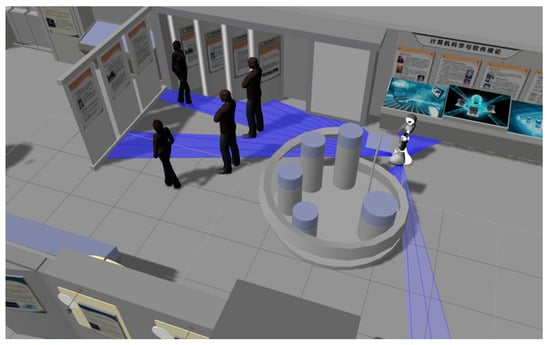 The continuous evolution of social robotic has fostered the presence of mobile robots in many contexts of people’s daily lives; therefore, leading the evolution of service robots. Nowadays, service robots provide support for specific tasks, such as helping elderly [1,2], giving academic classes to children [3,4], helping as guides [5,6,7], among many other tasks [8,9]. In particular, in such indoor environments (e.g, hospitals, schools, banks and museums), where the robot coincides with people and other robots, its movement and navigation must be programmed and adapted to robot–robot and human–robot interactions.