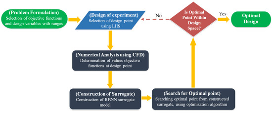 Figure 2 demonstrates the optimization procedure on the basis of surrogate modeling. Single-objective optimization was applied for the structural optimization. The optimization study, formulated as the maximization of the objective function value, can be mathematically articulated as: