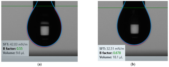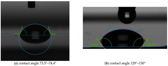 Figure 4 shows the surface tension of 2.5% PVA on Kapton and Silicon. The surface tension is found to be 42.03 mN/m for Kapton and 32.51 mN/m for Silicon substrate. To achieve a good inkjet printing with any material, the surface tension has to be in between (25–75) mN/m and viscosity has to be in between (1–8)cP [44].